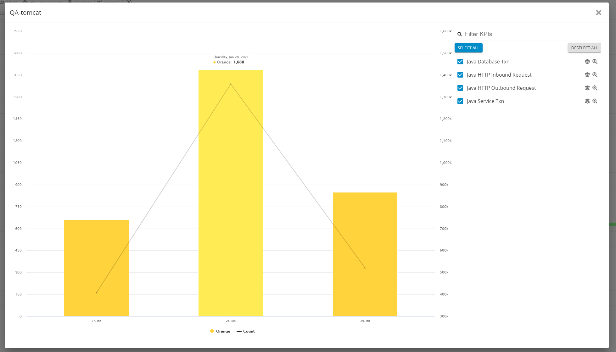 Data is aggregated across KPIs and for as many kpis as you like. Data is coming from our our Real-Time Data engine, giving real-time insights.