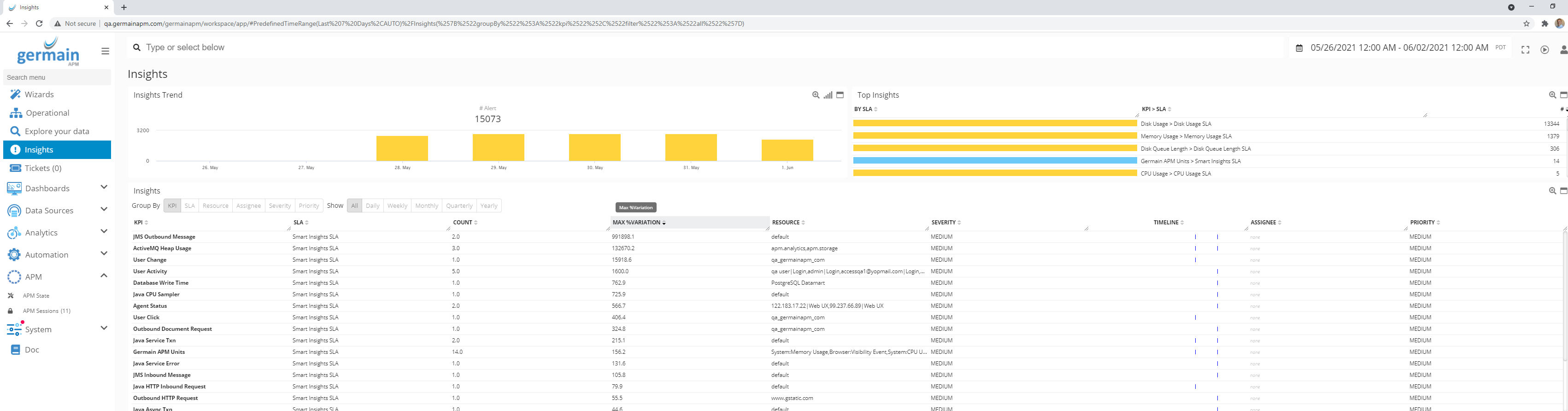 Added % Variance to the insights dashboard to make it easier to focus on biggest variations