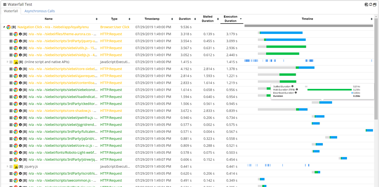 and some insights on whether this is stall, connection, wait, download ,etc