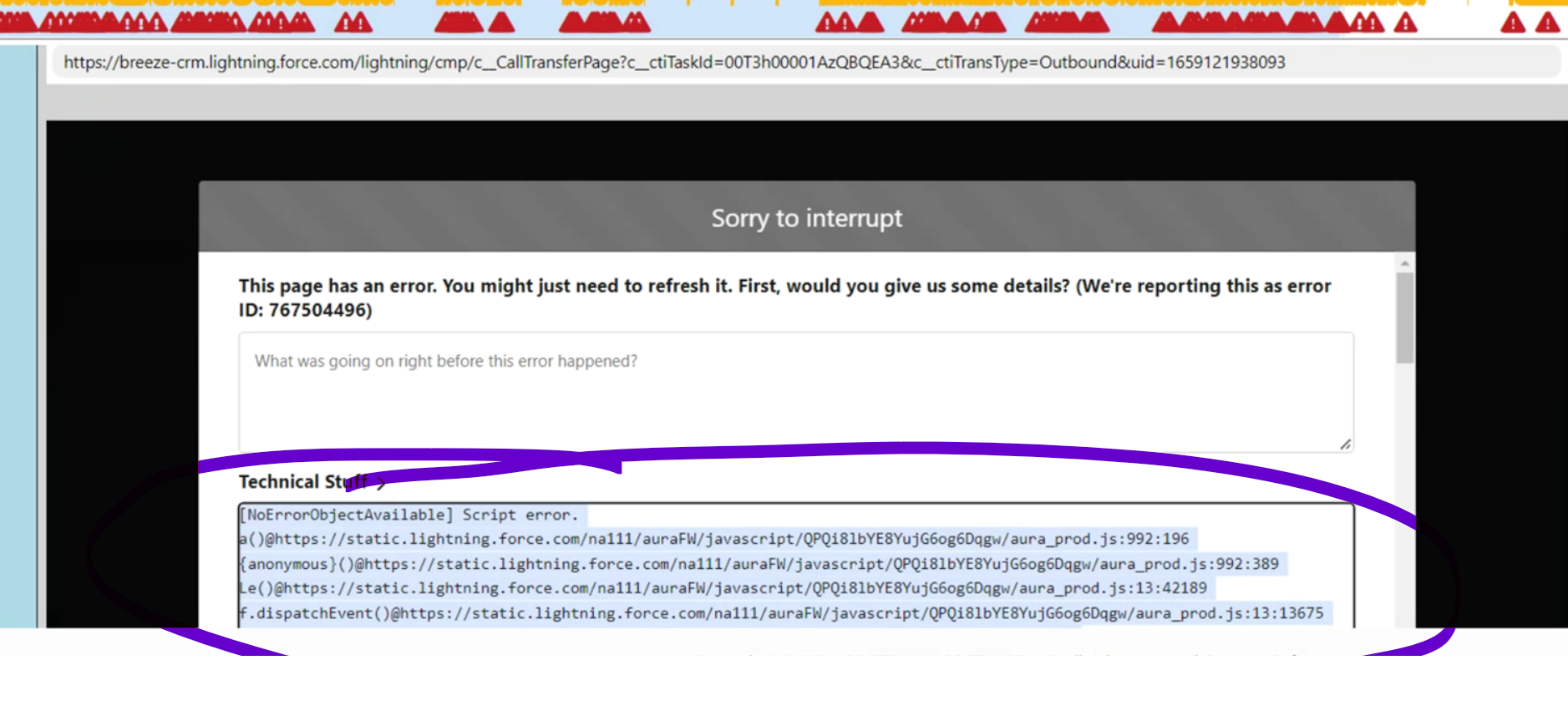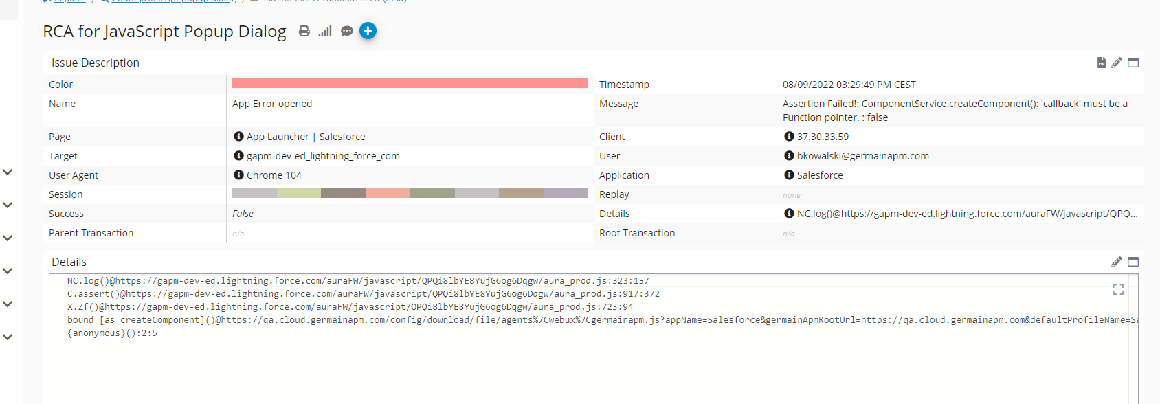 Germain captures (records, enables client replay of the recorded session, provides business impact analysis, etc.) whenever a Salesforce user encounters this error message: