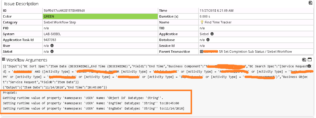 Monitoring & Analytics - Siebel - Property Set(s) on workflow rca dashboard