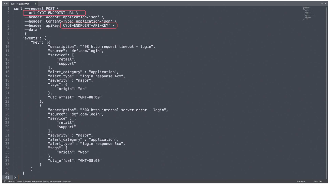 Posting a new message can be done by doing an HTTP POST request to the Moogsoft endpoint as shown below.
