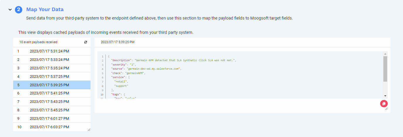 The above example while simplified showcases how simple it would be to configure the integration of Germain sending messages to Moogsoft.