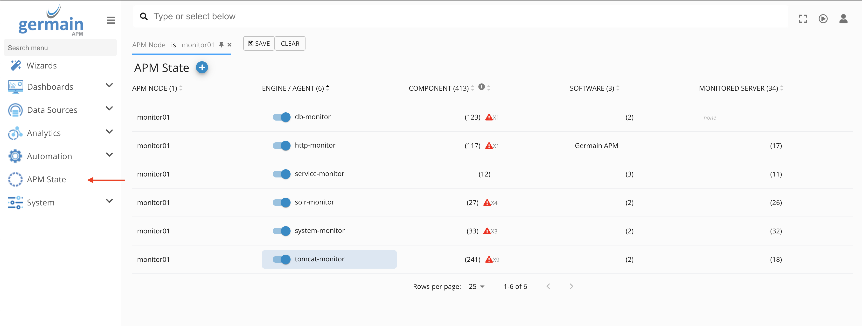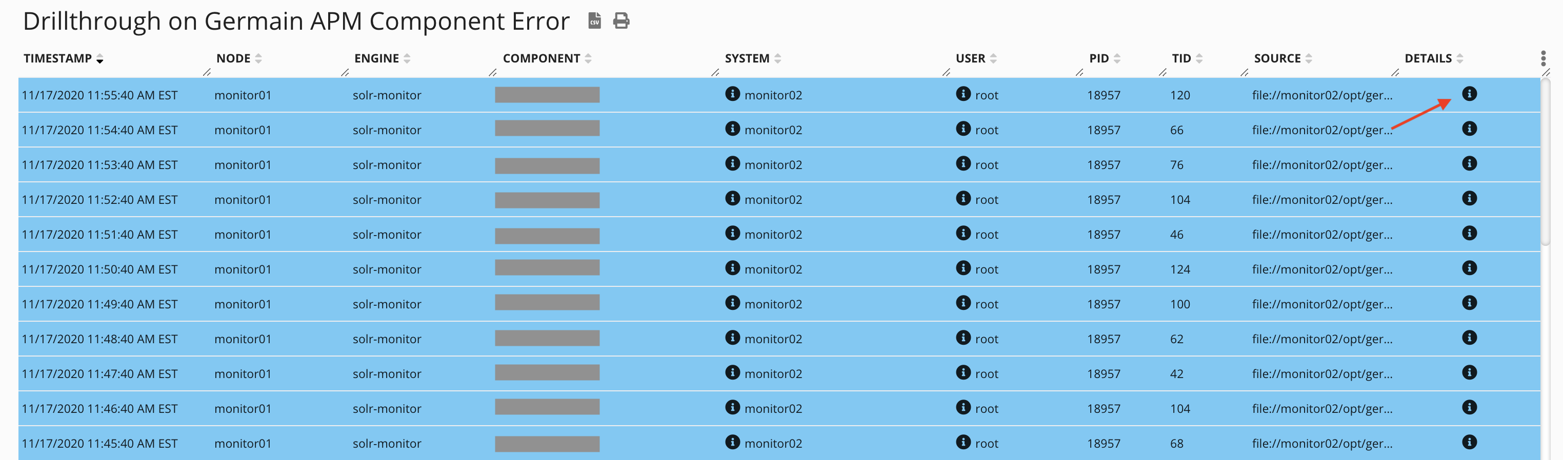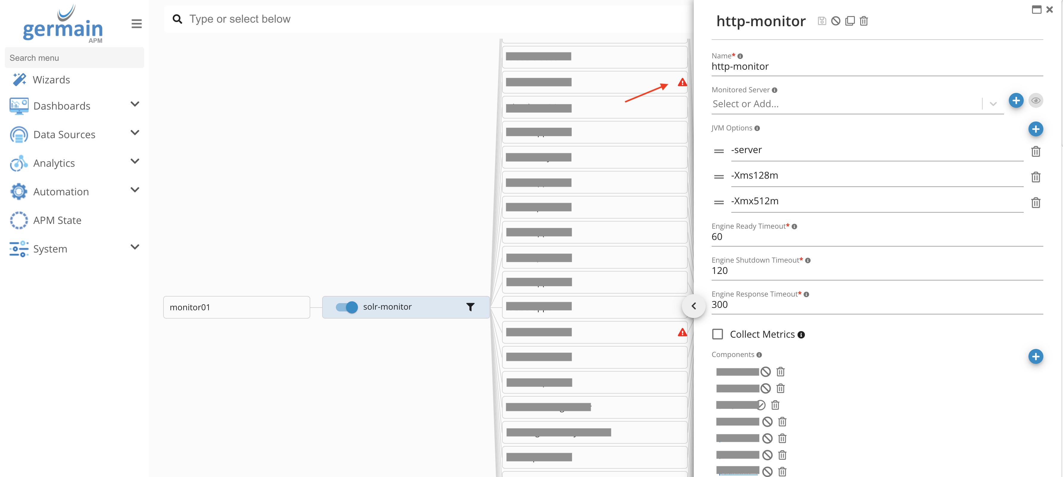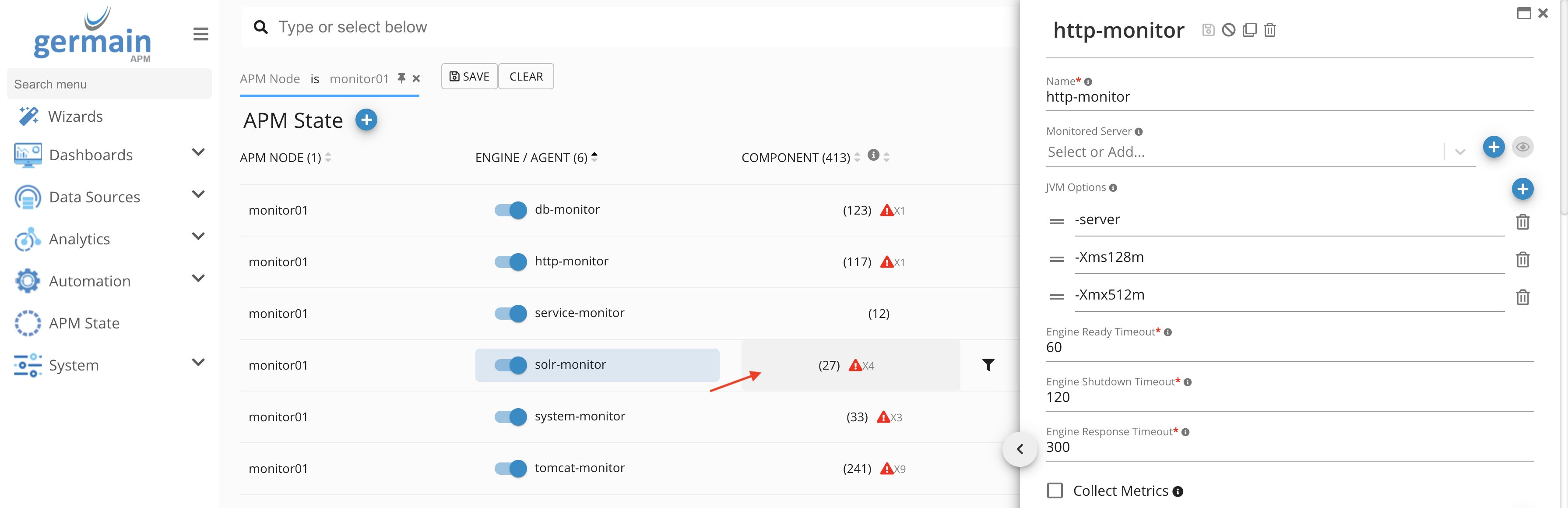 Click on the engine that is running the component (In this example I am choosing solr-monitor)