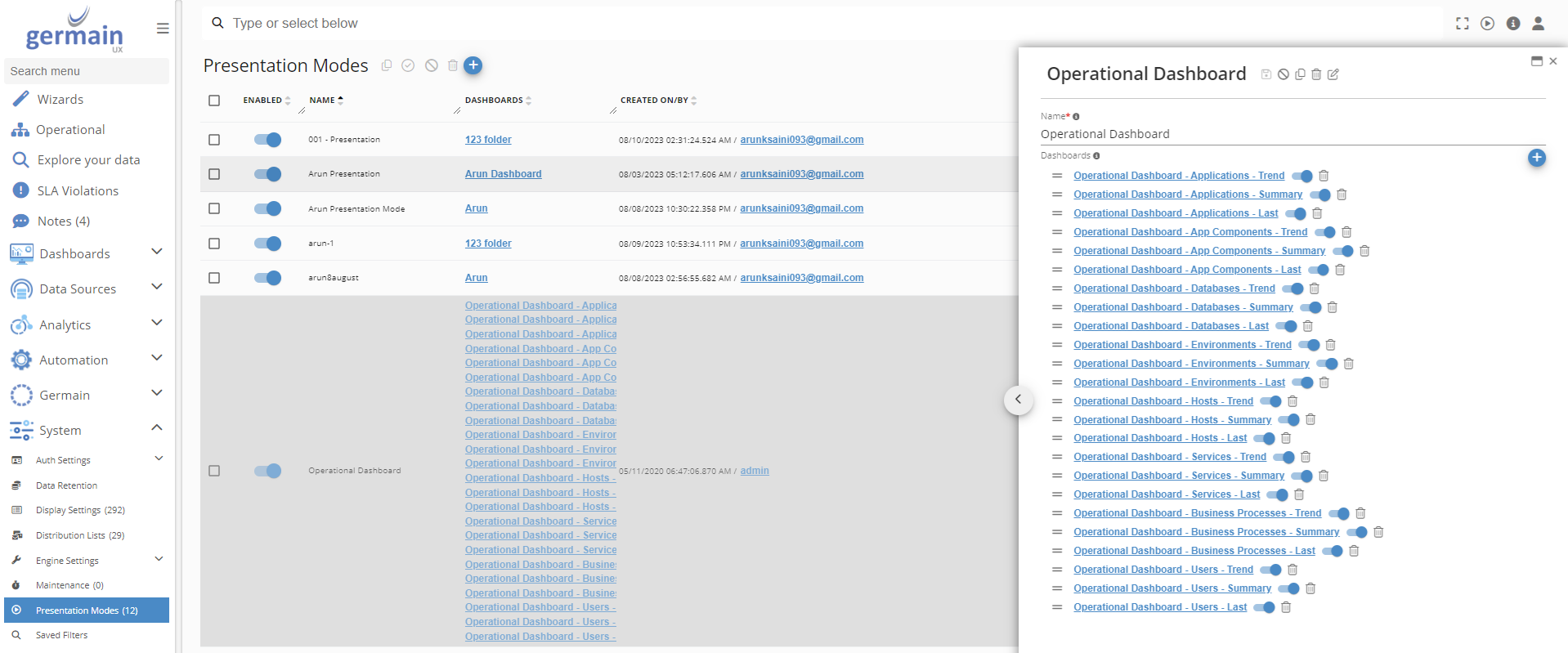 The Presentation Mode gives you the ability to visualize multiple dashboards in a rotating manner—very convenient for use on a large wall in a production room or war room.