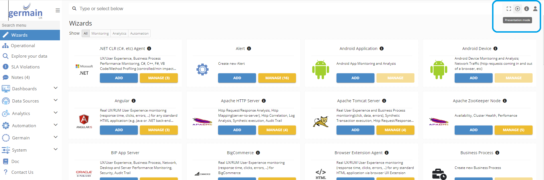 Play a Presentation Mode on Germain UX