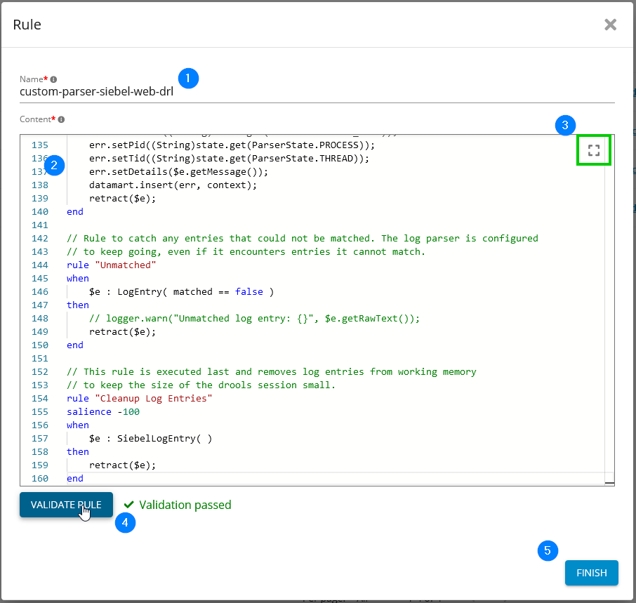 Enter your rule name. e.g. “custom-parser-siebel-web-drl”