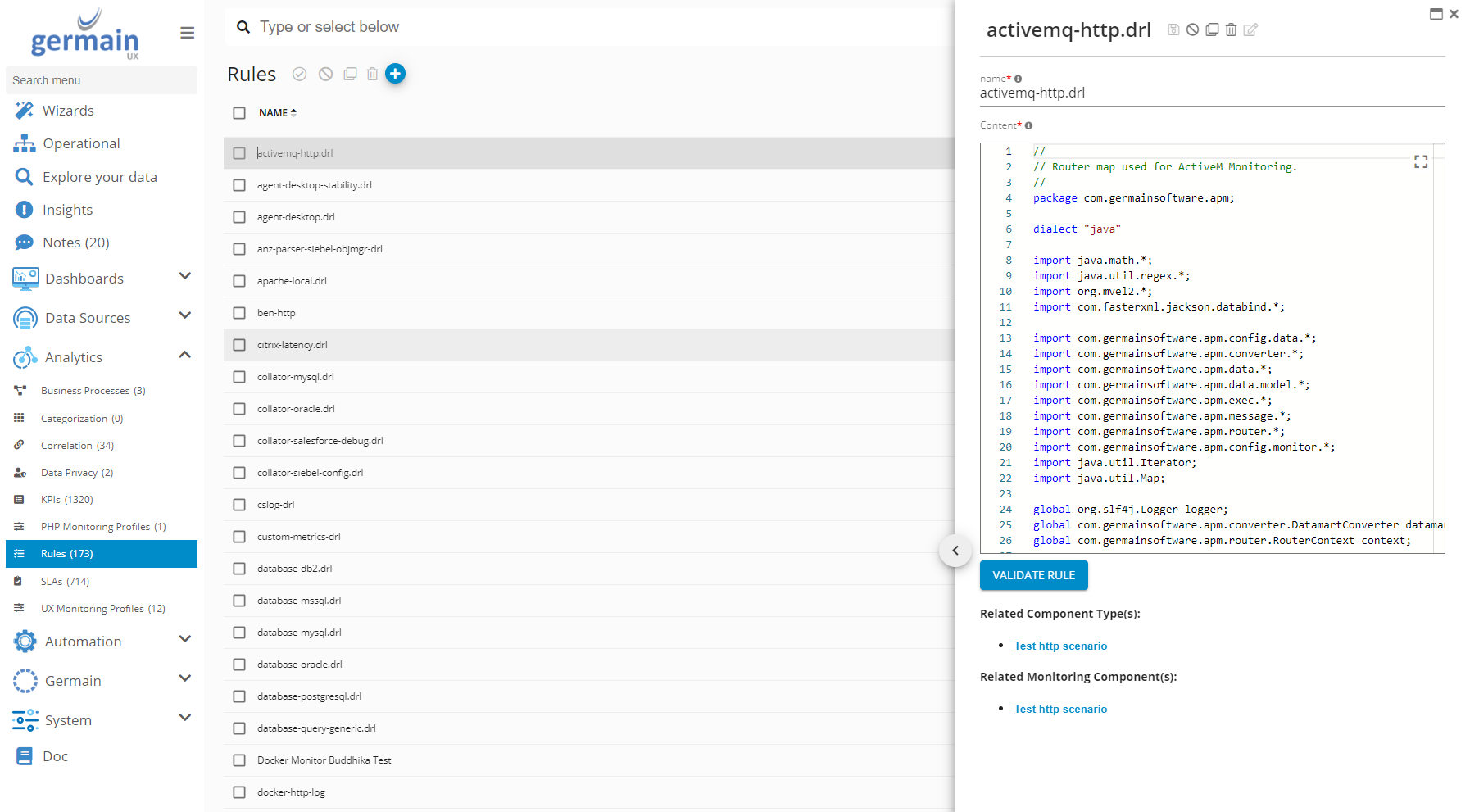 Go to Germain Workspace > Left Menu > Analytics > Rules