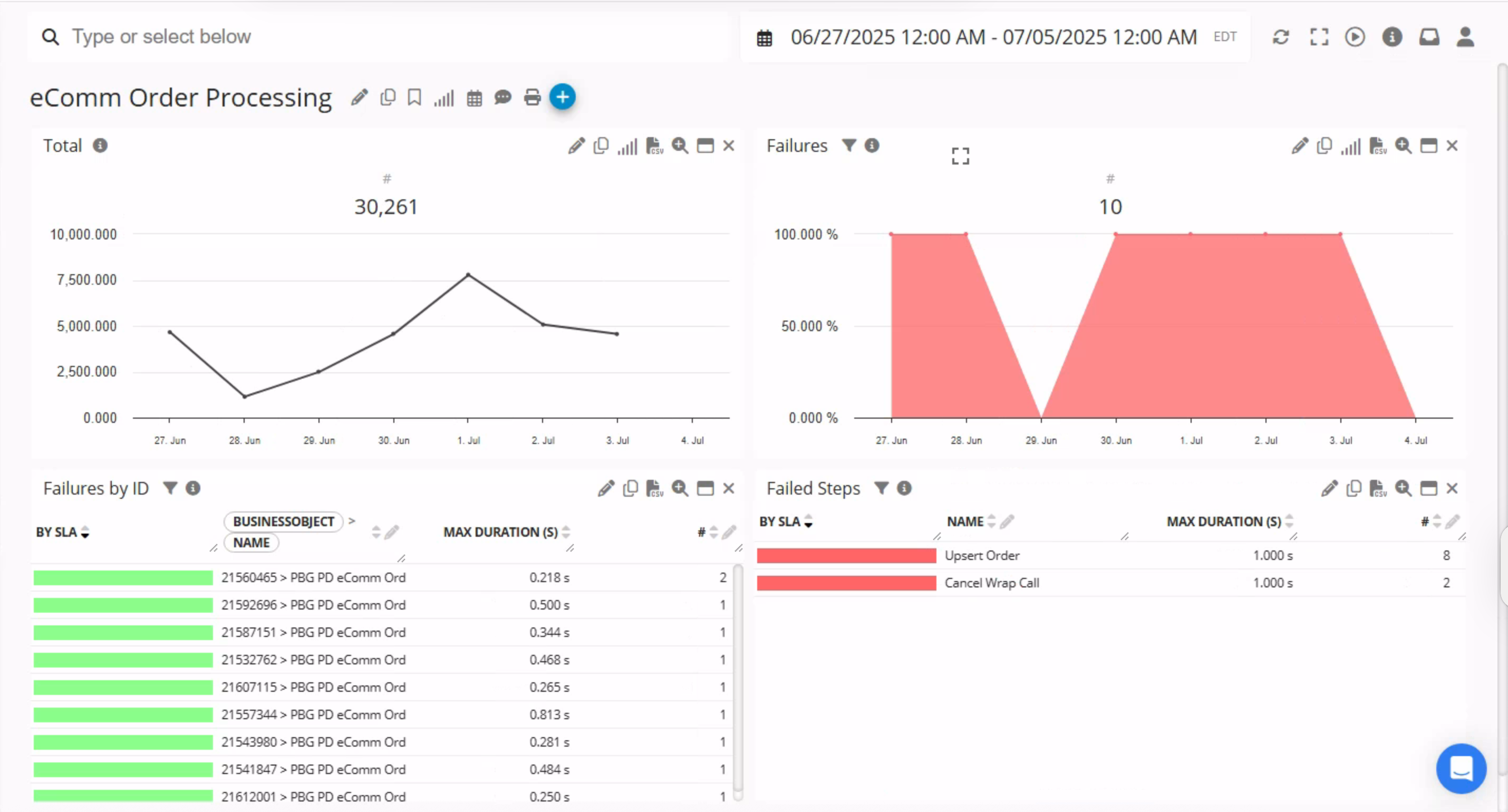 Germain monitors errors that impact users, processes and technology layers of SAP. Because error monitoring is hard and finding outlier is even harder, Germain UX’s error monitoring is preconfigured specifically for SAP. More details on how to enable Error monitoring for SAP.