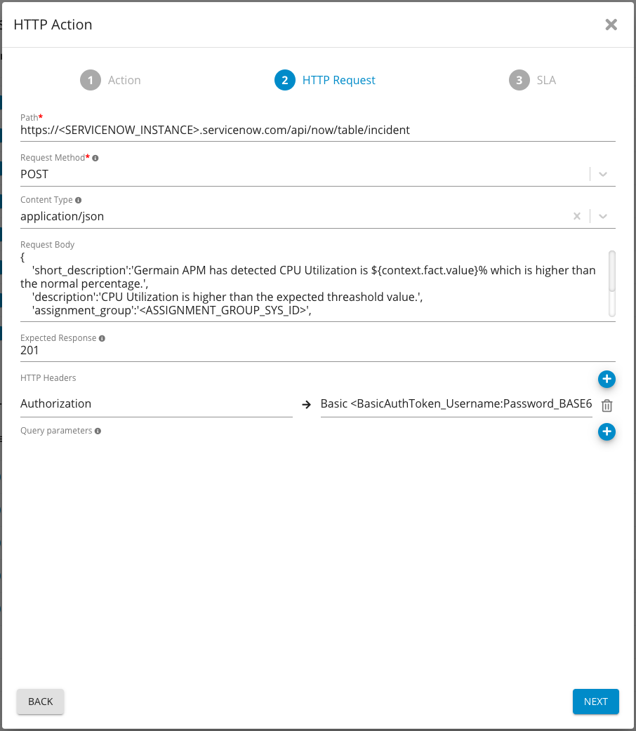 For this example, we would create Service Now Incident once CPU Usage SLA has been breached.