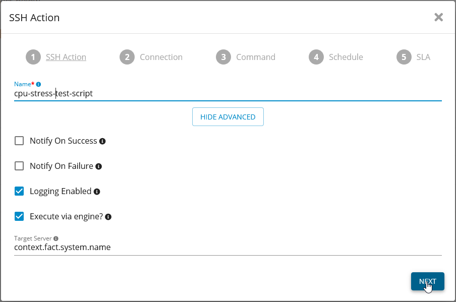 “Execute via engine”: If checked the ssh session will originate from the engine associated to the server, if not it will originate from Action Services