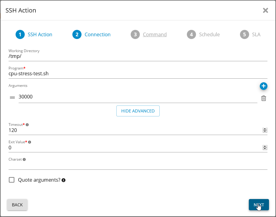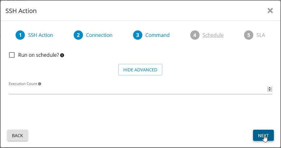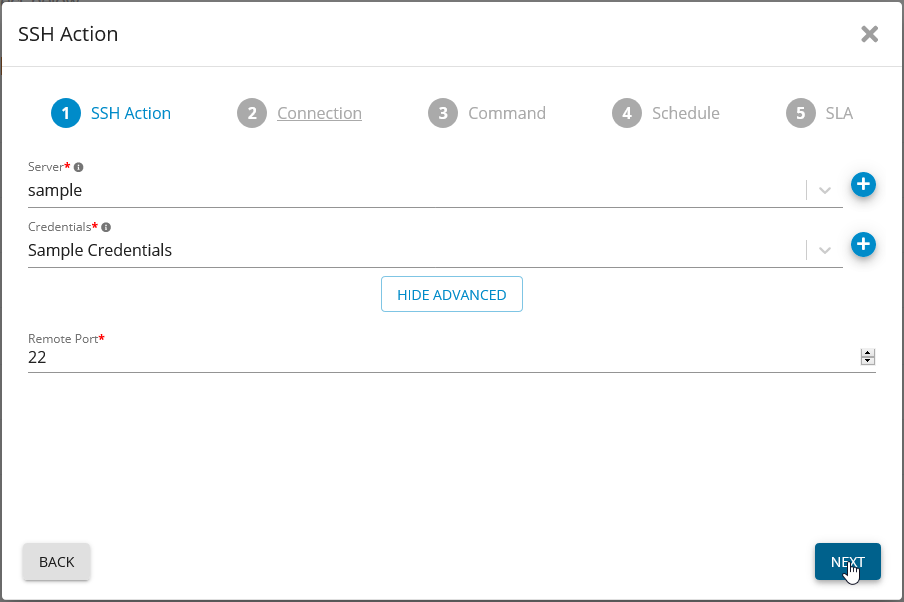 Start the “SSH Action” Wizard from the “SSH” Action list under “Automation”