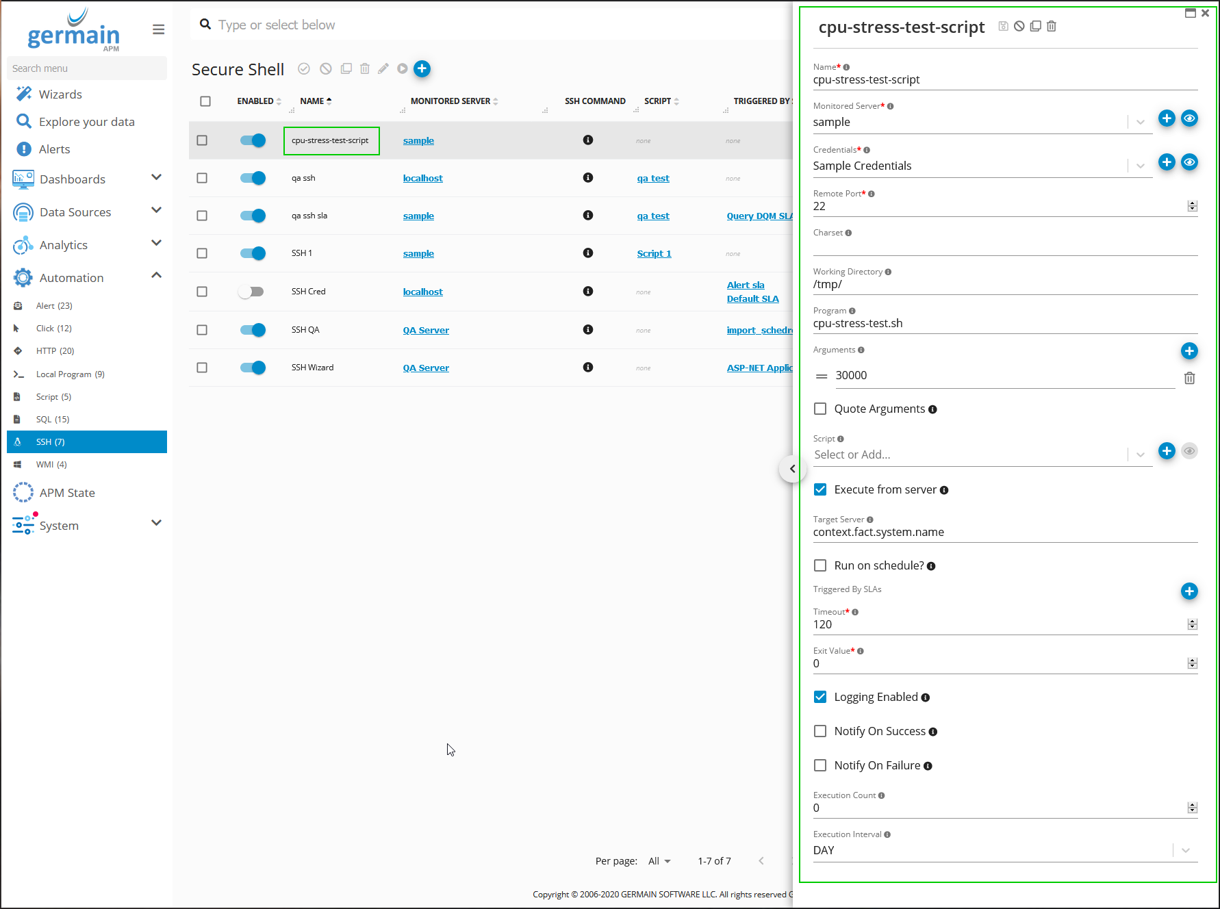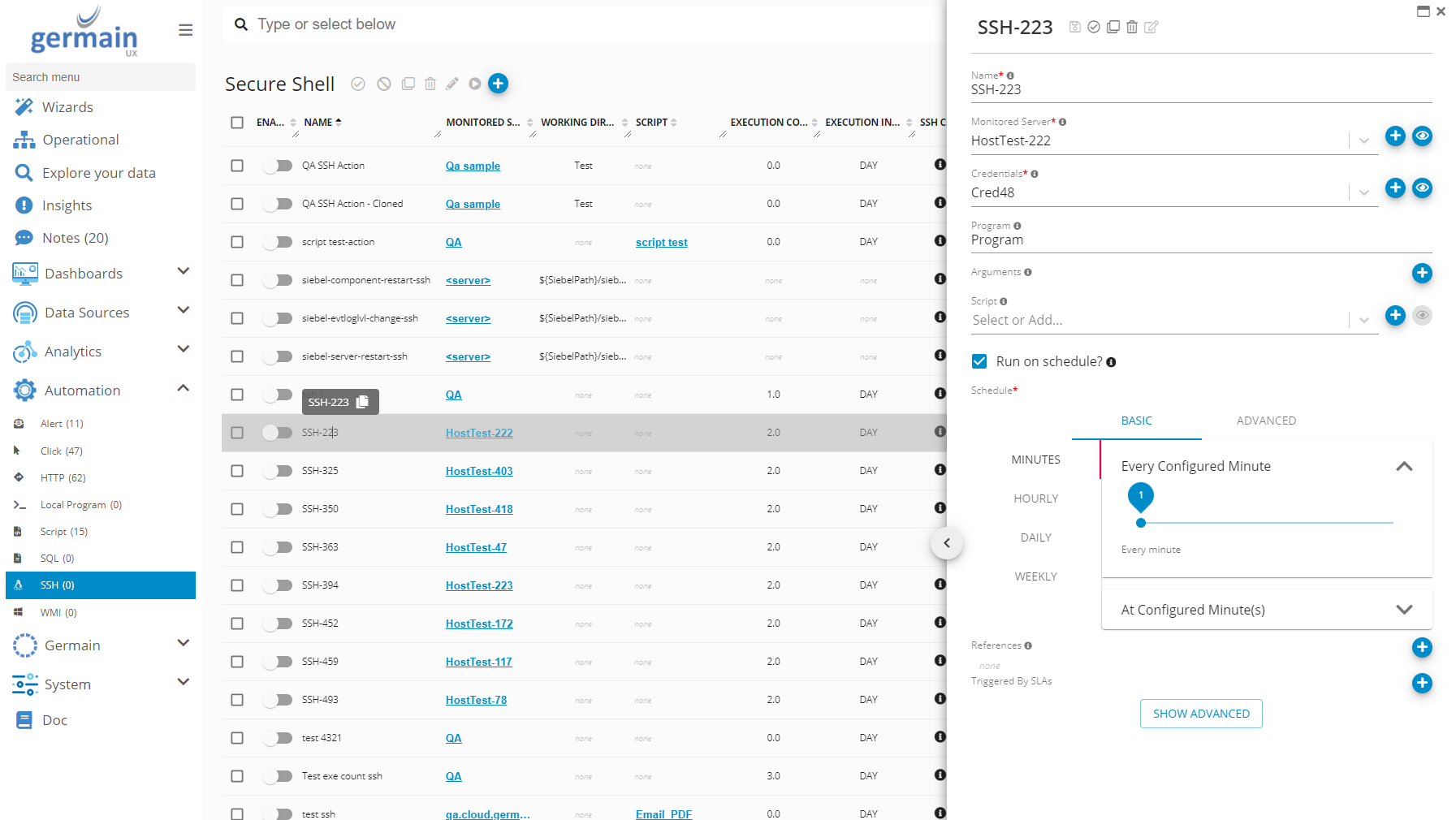 Germain Workspace > Automation > SSH