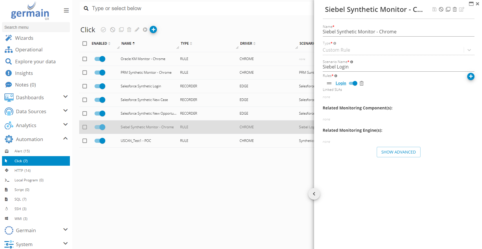 The primary purpose of running a synthetic user scenario 24/7 is to detect user issues before they impact real users by simulating a user browsing your Siebel CRM application 24/7 at your desired frequency.