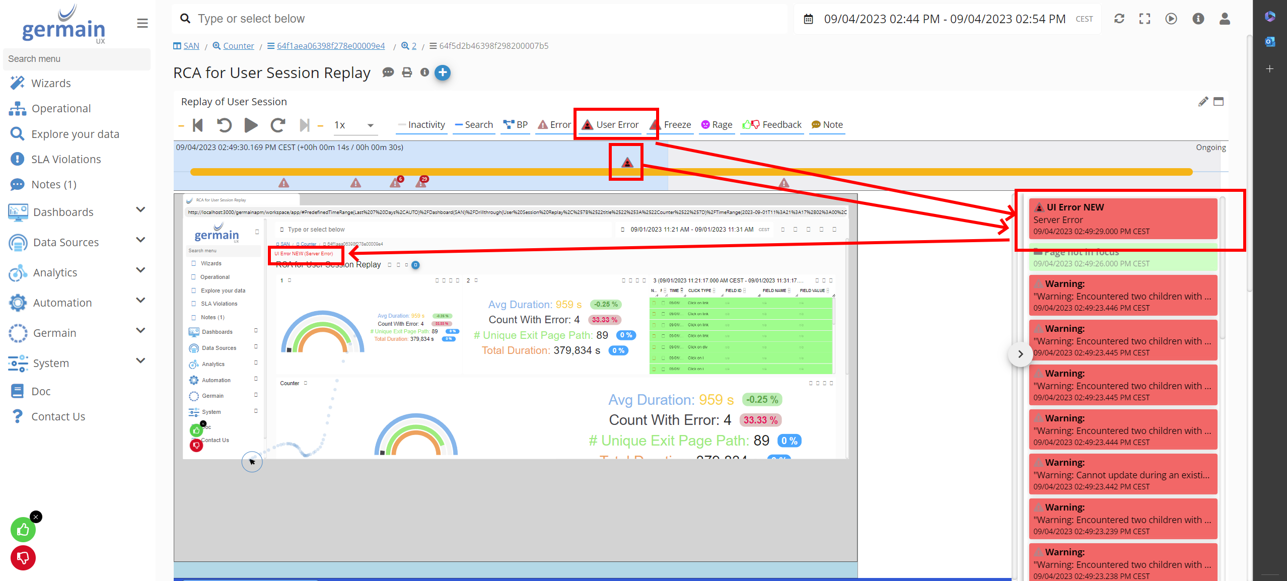 User Errors on User Session Replay - Germain UX